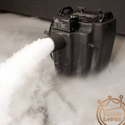 This high powered Dry Ice Machine is used to create thick, low-lying “dancing on a cloud” effects for events such as Weddings, Stage Productions, Halloween, Parties & DJ Events.