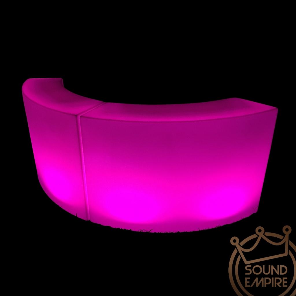 Our Glow Dual Curved Bar is an illuminated glow in the dark, battery-operated bar which is ideal for all indoor and outdoor functions and is sure to light up your event space and give your guests that 'WOW' factor throughout the evening.